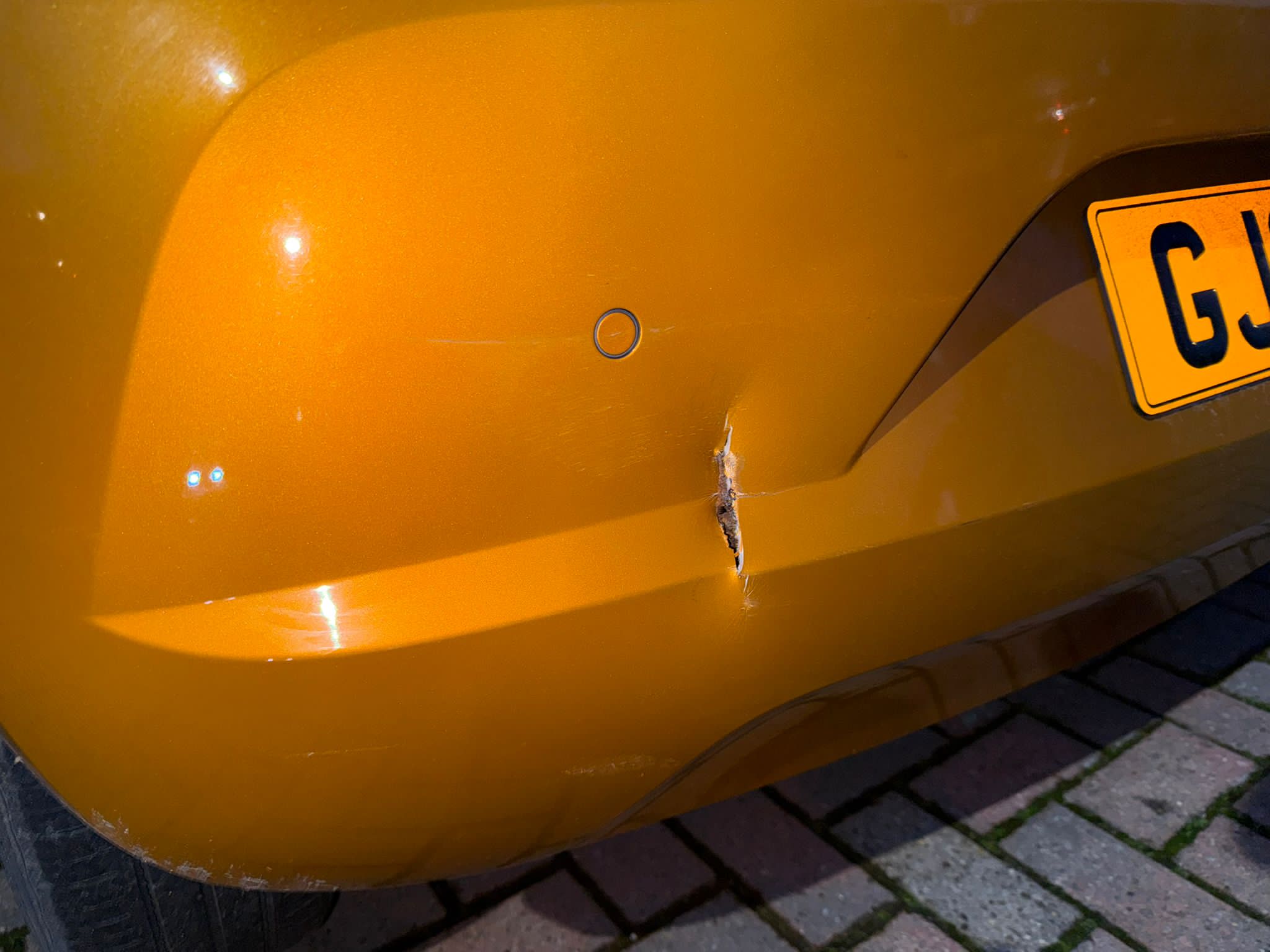 This Skoda Citigo arrived with damage to the bumper corner, including a visible crack and distortion to the shape of the panel.